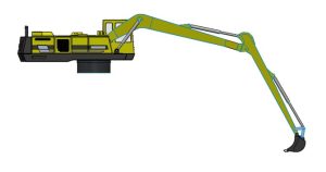 The excavator arm, also called the stick, is the structural component mounted between the boom and the bucket or dredging tool. It controls reach and digging depth while transmitting excavation forces to the attachment. The arm is manufactured from high-strength steel with internal reinforcements and is operated by a hydraulic cylinder, designed to withstand high bending moments, torsion, and cyclic fatigue loads.